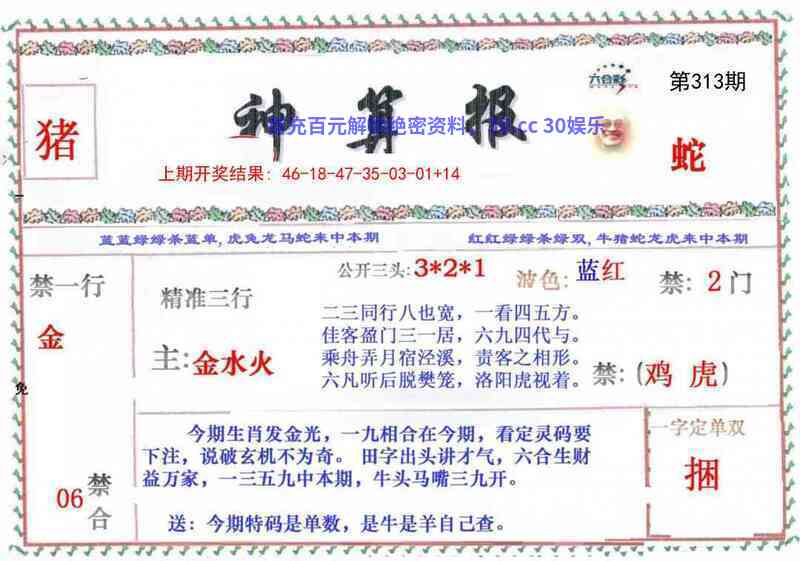315期:绝杀三肖【蛇鼠猪】开虎04准
